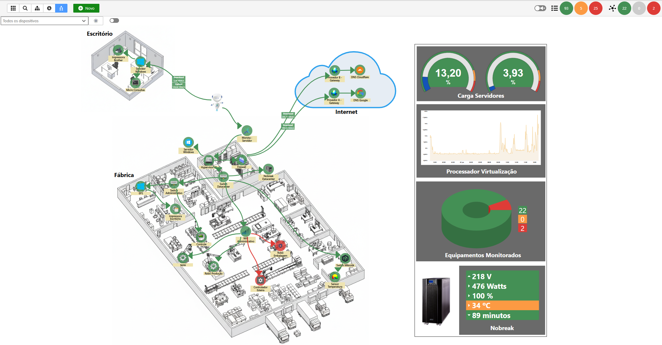 Monitoramento em Tempo Real: Adicione blocos de dados, gráficos de desempenho, indicadores e muito mais junto aos dispositivos.